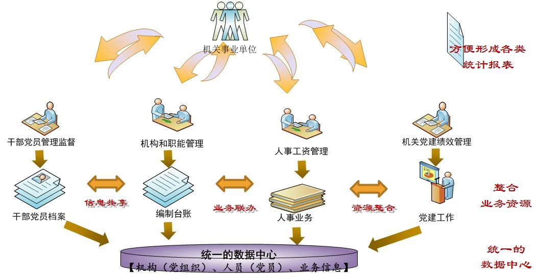 佛软信息长期深入研究政府体系和各级部门的管理模式和业务。自2004年开始研发“数字人事”系统平台开始,意识到随着经济改革和体制改革的不断深入发展,对政府行政管理和履行职能、以及党建党务工作的要求将越来越高,而担任各级、各类社会、经济管理的核心权责的是以机关党员和公务员为核心的管理能力是核心,所以,佛软专业专心研发以党政机构、人员管理和服务为核心的综合平台和项目应用,实现以组织部、人社局、编委办、市直机关工委为核心的一体化综合化党政协同管理和服务的系统平台,建立了各类机构和人员为基础的地方数据中心,可实现统一的机构和党组织、干部和人力资源、编制职能和人事管理的一体化综合性管理和服务平台,同时,提供了与劳动、社会保障的整合模式,实现了市级基础数据充分共享、业务和事务联办、统一管理的体系,提高了地方政府各相关职能部门的综合管理能力,构建和形成的以人为中心的“大数据”归集和挖掘分析能力,提高了地方各级领导的科学决策能力,为各级管理部门提供了准确、实时、完整的人数据和科学管理支持。